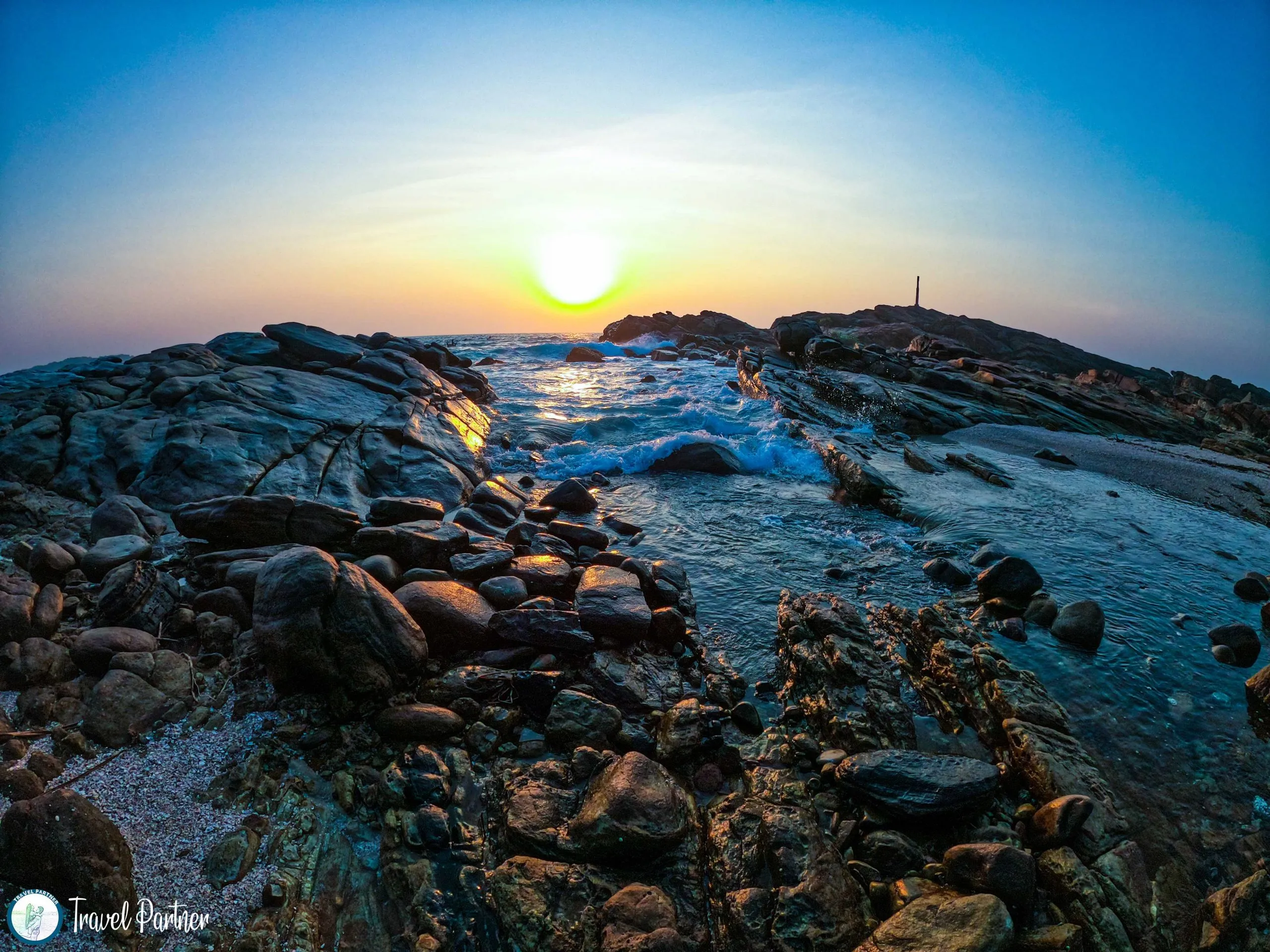 A serene view covered with blueness will lock your eyes for a couple of minutes once you step at Blue Beach Island. This turquoise sea and countless rocks create a picturesque view for you.